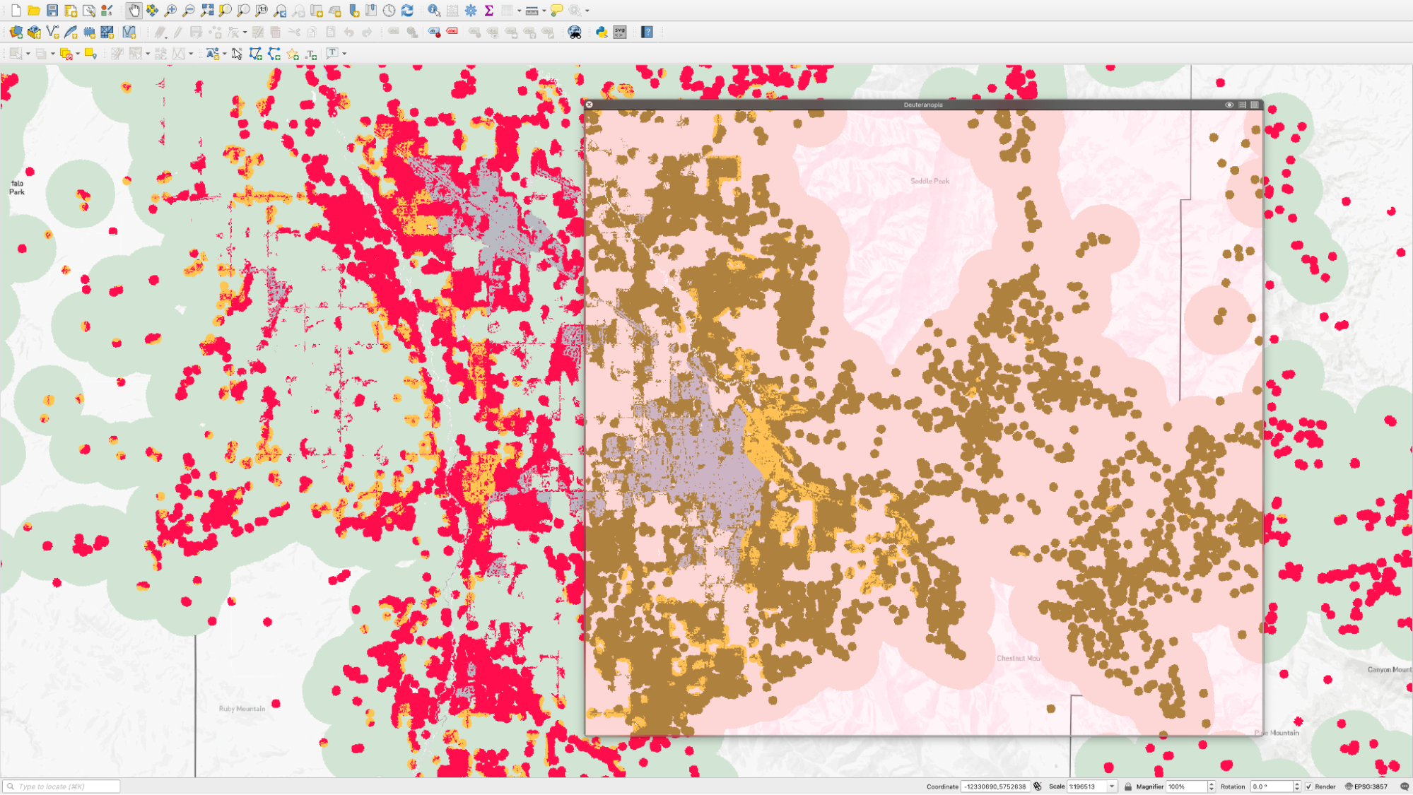 Creating accessible maps starts with designing maps focussed on the purpose at hand, removing distracting elements, adding a legend, and choosing an accessible color palette. Our designers like to use the Chroma.js Color Palette Helper to tweak color scales for accessibility, and use Sim Daltonism to quickly test for various types of color blindness when working in tools like QGIS.