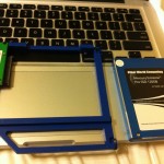 Next was the SSD + HD solution. A little bit of Googling and you can find there are a number of kits available that let you swap out your SuperDrive for a 2.5” mounting bracket to mount an additional SATA HD or SSD. We did a bit of research on SSDs and ended up back at Other World Computing again looking at their 120GB Mercury Extreme Pro SSD.